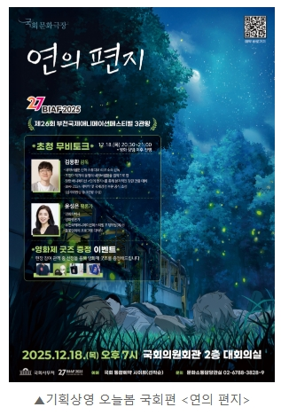 이번 상영회는 BIAF와 국회의 협업으로 마련된 프로그램으로, 더 많은 관객이 양질의 애니메이션을 접하고 작품을 깊이 있게 즐길 수 있도록 기획됐다. 상영 후에는 김용환 감독과 윤성은 평론가(들꽃영화제 프로그램 디렉터)가 참여하는 무비토크(GV)가 이어진다. 제작 과정과 다양한 에피소드, 숨겨진 비하인드 스토리까지 직접 들을 수 있어 관객과 창작자가 소통하는 뜻깊은 시간이 될 전망이다.