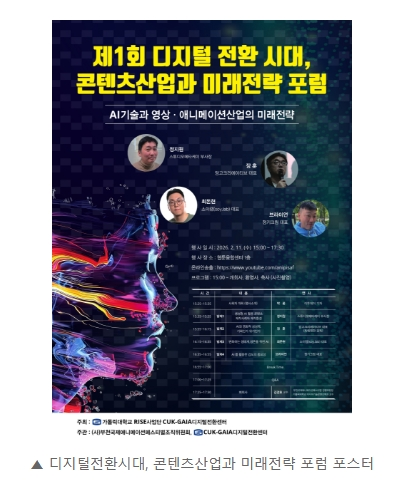 제28회 부천국제애니메이션페스티벌(이하 BIAF2026)은 가톨릭대학교 RISE사업단 CUK-GAIA디지털전환센터가 주최하고, BIAF와 CUK-GAIA디지털전환센터가 공동 주관하는 『디지털전환시대, 콘텐츠산업과 미래전략』 포럼을 오는 2월 11일(수) 개최한다.