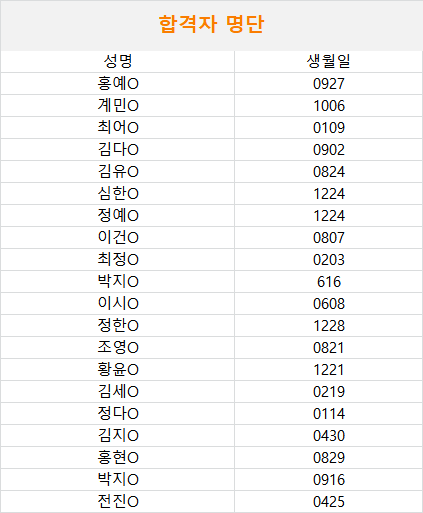 아래 합격안내 및 교육일정을 공유 드리니 확인 부탁드립니다.