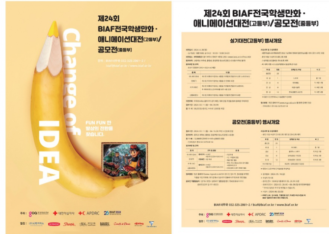 K-애니메이션과 만화, 웹툰계의 무한 가능성을 보일 청소년들의 기회를 제공하고자 개최되는 제24회 BIAF전국학생만화애니메이션대전/공모전에 대한 자세한 사항은 BIAF 홈페이지(www.biaf.or.kr) 에서 확인 가능하다.